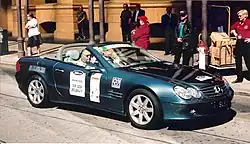 In retirement, Brabham continued to be involved in motorsport events, appearing at contemporary and historic motorsport events around the world where he often drove his former Cooper and Brabham cars until the early 2000s. In 1999, after competing at the Goodwood Revival at the age of 73 he commented that driving stopped him getting old.[46] Despite a large accident at the 2000 Revival, the first racing accident to put him in hospital overnight, he continued to drive until at least 2004.[41] By the late 2000s, ill-health was preventing him from driving in competition. In addition to the deafness caused by years of motor racing without adequate ear protection, his eyesight was reduced due to macular degeneration and he had kidney disease for which by 2009 he was receiving dialysis three times a week. Nonetheless, that year he attended a celebration of the 50th anniversary of his first world championship at the Phillip Island Classic festival of motorsport,[50] and in 2010 flew to Bahrain with most of the other Formula One world Drivers' Champions for a celebration of 60 years of the Formula One world championship. Brabham was the oldest surviving F1 champion.[51]