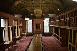 The Society's library was founded in 1787 and now holds a remarkable collection of legal volumes, though the oldest book in its collection is Henry Savile's Rerum Anglicarum scriptores post Bedam (London, 1596).