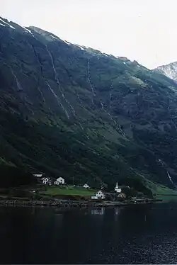 Sogn is a traditional district in Western Norway (Vestlandet). It is located in the county of Vestland, surrounding the Sognefjord, the largest/longest fjord in Norway. The district of Sogn consists of the municipalities of Aurland, Balestrand, Hyllestad, Høyanger, Gulen, Leikanger, Luster, Lærdal, Sogndal, Solund, Vik, and Årdal. The district covers 10,675 square kilometres (4,122 sq mi). The largest urban area in Sogn is the village of Sogndalsfjøra (in Sogndal municipality), with 3,455 residents. The second largest urban area is the village Øvre Årdal (in Årdal municipality), with 3,397 people (this village used to be the largest, but recently it was passed by Sogndalsfjøra).[2][3]