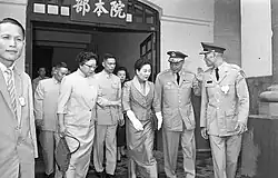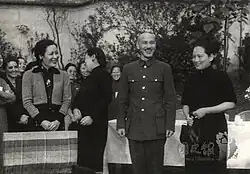 During a visit to Sun's residence in Shanghai, Chiang Kai-shek encountered Ching-ling's younger sister, Mei-ling, for the first time and became enamoured with her. Subsequently, Chiang divorced his wife in Fenghua and sought Sun's counsel on pursuing Mei-ling. When Sun consulted Ching-ling on the matter, she expressed her strong disapproval. Sun then advised Chiang to wait, and Chiang obeyed.[23] In 1927, Mei-ling married Chiang, who was about to launch a purge against the CCP.[24] Ching-ling protested and left China after the purge.[25]