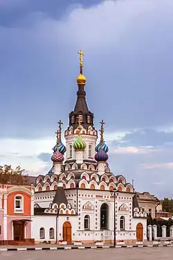 The church was built between 1904 and 1906. The project was designed by Pyotr Zybin and inspired by the architecture of the Saint Basil's Cathedral in Moscow.[1][2]