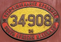 The Class 34-900 type GE U26C diesel-electric locomotive was designed by General Electric and built for the South African Railways (SAR) by the South African General Electric-Dorman Long Locomotive Group (SA GE-DL, later Dorbyl). Thirty locomotives were delivered in 1980 and 1981, numbered in the range from 34-901 to 34-930.[1][2][3][4]