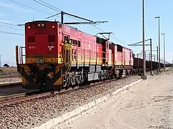 Transnet Freight Rail's Class 43-000 was initially placed in service on the line from the Mpumalanga Lowveld via Swaziland to Richards Bay and, during 2012, also on the Sishen-Saldanha iron ore export (Orex) line.[18] In May 2013, new Class 43-000s were also observed at the Pyramid South locomotive depot north of Pretoria.