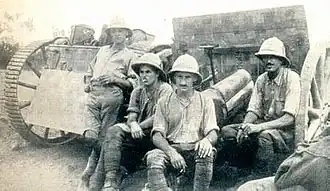 On 20 July 1915, troops from the Aden Brigade, the 28th Indian Brigade, 1/B Battery, HAC, 1/1st Berkshire Battery, RHA,[7] and a detachment of Sappers and Miners, under the command of Lieutenant-Colonel A. M. S. Elsmie, a soldier well trained in frontier fighting, surprised the Ottomans at Shaikh Othman, completely defeated them and drove them out of the place.[6] Between fifty and sixty Ottoman soldiers were killed and wounded, and several hundred men, mostly Arab tribesmen, were made prisoners. This success was followed up in the following month by an attack by a small column on an Ottoman post between Lahij and Shaikh Othman. The Ottomans were driven from the town. Another attack in a different direction was equally successful. Reports reached Aden that the Ottomans were preparing to retire from Lahij itself, and in September a column under Colonel Elsmie set out in the direction of Waht. Here it surprised a force of seven hundred Ottomans, with eight guns, who were supported by about a thousand Arabs. The Ottomans were driven back, and Waht fell to the British troops, who had been aided both on sea and land by the cooperation of the cruiser HMS Philomel of the New Zealand Naval Forces, under Captain Percival Hill-Thompson.[5]