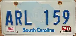 - ^ a b "South Carolina License Plates". www.licenseplates.cc. Retrieved September 23, 2023.