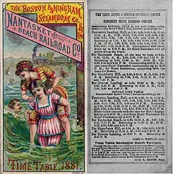 The Nantasket Beach Railroad opened in 1880 as a branch off the South Shore but closed in 1886. It was reopened in 1886 and electrified, running until 1932. Winter service was replaced by buses beginning in 1926.[5] Portions of the former railroad bed were converted to paved roads, including Fitzpatrick Way, in 1937.[6][7]