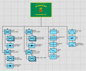 The Republic of Vietnam Marine Division (RVNMD, Vietnamese: Sư Đoàn Thủy Quân Lục Chiến or TQLC; French: Division de Marines de la république du Viêt Nam) was part of the armed forces of South Vietnam. It was established by Ngo Dinh Diem in 1954 when he was Prime Minister of the State of Vietnam, which became the Republic of Vietnam in 1955. The longest-serving commander was Lieutenant General Le Nguyen Khang. In 1969, the VNMC had a strength of 9,300, 15,000 by 1973,[1] and 20,000 by 1975.[2]