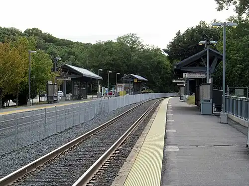 Southborough station is a commuter rail station on the MBTA Commuter Rail Framingham/Worcester Line, located near the intersection of Cordaville Street and River Street (MA 85) in the Cordaville section of Southborough, Massachusetts. The parking area is located off River Street adjacent to the inbound platform. Passengers use ramps and stairways to access the sidewalk along River Street to cross under the tracks.
