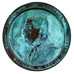 The campus is also home for the state's sole commemoration of the governorship (1936–1939) of Richard W. Leche (1898–1965). It is a large medallion on the north exterior wall of the east side of Strawberry Stadium.
