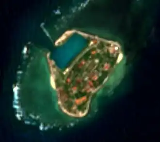 Southwest Cay, also known as Vietnamese: Đảo Song Tử Tây; Pugad Island (Filipino: Pulo ng Pugad, lit. 'Island of Nest'); Mandarin Chinese: 南子島/南子岛; pinyin: Nánzi Dǎo, is an island on the northwestern edge of the Spratly Islands in the South China Sea. It is part of the atoll North Danger Reef, and just 1.75 miles (2.82 km) southwest of Northeast Cay. With an natural area of 12 hectares (30 acres), it is the sixth largest of the naturally occurring Spratly Islands, and the second largest of the Vietnamese-occupied islands. Southwest Cay has the archipelago's highest point, at 4 meters above sea level. It was once a breeding place for birds, and was covered with trees and guano; export of guano had been carried out "on a considerable scale".[1]
