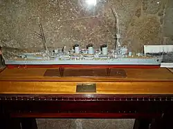 From 5 February to 10 June 1931, Blas de Lezo was at the Arsenal de La Carraca in San Fernando for repairs and the installation of searchlights, an electric log, an acoustic echo sounder, and a Hazemeyer firing station.[1] During the first week of August 1931, Blas de Lezo, Almirante Cervera, Libertad (ex-Principe Alfonso), Méndez Núñez, Miguel de Cervantes, República (ex-Reina Victoria Eugenia), eight destroyers, and 10 submarines gathered at Bilbao.[1] In mid-October 1931, Blas de Lezo was back in Cádiz, and she conducted tests in the Bay of Cádiz on 30 October.[1] She left Cádiz on 27 November 1931 to proceed to coast of Galicia.[1] On 29 December 1931, she left Vigo accompanied by two submarines from Ferrol for gunnery practice in the open ocean.[1]