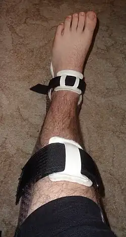 An ankle foot orthosis (AFO), a type of splint used to support the foot and ankle. | |