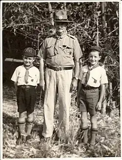 There has been a "scout" presence in St Johns Wood since before World War II.[65] During the war, the local Red Cross branch would hold their meetings in the "Scout's hall".[66] However, the 1st St Johns Wood Scout Group did not begin officially until 9 March 1945.[67] "Pop" Johnstone was the first Cub Master, and the Cub Pack met in the Igloo in Royal Parade, 100m or so west of the Gresham Street intersection. An article on "Australia's Tiniest Hospital",[68][69][70] Target included a photo of "Pop" Johnstone with two Cubs.[71] He remained Cub Master until 1946, when he became Group Scout Master. He led the Group until June 1947, when he resigned for health reasons.