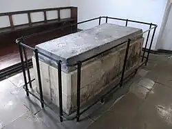 Lord Sudeley insists this is the tomb of William de Tracy who is known to have been the incumbent of this church,[6] endowed a chantry at Mortehoe in 1307/8, and died in 1322. The priest is described as 'Sir' because this was an oft-used prefix for priests in medieval times.[7] It is unclear what family relationship, if any, this man had to William de Tracy (d.post 1172), the notorious co-assassin of Archbishop Thomas Becket (d.1170).