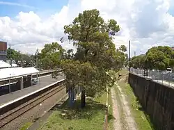 To the west of the station lies an incomplete island platform. It was originally built in the 1970s as part of the construction of the Eastern Suburbs railway line when the Illawarra railway line between Erskineville and Sydenham was planned to be expanded to accommodate six tracks. This was abandoned as a cost-cutting exercise. The CityRail Clearways Project envisaged reviving this plan, with stopping trains serving only the newly completed western platforms. However, this project was cancelled in November 2008.[4]