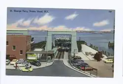 Around this time, ferry services in the area were being discontinued and replaced by bridges and tunnels, leading to the eventual demise of the 69th Street ferry.[128][129] The exception was the direct ferry from Manhattan to Staten Island,[130] which was not expected to see a significant decrease in ridership because it provided the only direct link between the two boroughs.[131] Electric Ferries' franchise for the Bay Ridge ferry expired on March 31, 1954; and the city contracted the 69th Street ferry's operation to Henry Shanks in order to keep that ferry running.[132] The 69th Street ferry ceased operation in 1964, due to the opening of the Verrazzano-Narrows Bridge a short distance south of its route.[46][133] At the time of the 69th Street ferry's discontinuation, it was being used by 7,000 passengers daily, who paid five cents each, and 8,000 vehicles daily, which were charged 75 cents apiece. Each boat could fit between 500 and 750 passengers but only 42 vehicles, which meant for traffic jams at both of the ferry's slips, due to the boats' low capacity. However, the route between St. George and Whitehall was kept open, since the bridge's opening was expected to spur an influx of residents to Staten Island, with a potential increase in commute ridership on the ferry to Manhattan.[128]