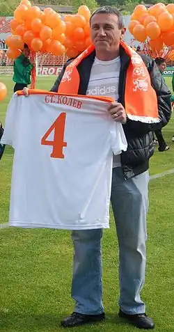 Stefan Kolev (Bulgarian: Стефан Колев; born 11 October 1966) is a Bulgarian football manager of Bulgaria U15, former association football defender and only player to win five BulgarianA Group titles with four clubs – Levski Sofia in 1988, CSKA Sofia in 1992, Slavia Sofia in 1996 and Litex Lovech twice, in 1998 and 1999.[1]