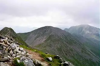 ![]() Stob Choire a’ Chàirn with Am Bodach in the distance seen from An Gearanach, One Km to the north. | |