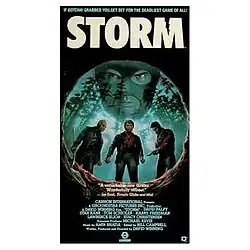 Storm is a 1987 Canadian drama film and first feature starring David Palffy and Stan Kane directed by David Winning. The film was the debut of director Winning. Two college students on a survival weekend in the wilderness cross paths with three aging criminals looking for treasure buried decades earlier. Made in 24 days on a budget of about $70,000 CDN. The original 81-minute film was filmed near Bragg Creek, west of Calgary, in the summer of 1983, with an initial cast and crew of 10 people.[1] It was released by Warner Home Video on September 1, 1988. Director Winning appears in a small cameo as the younger villain.