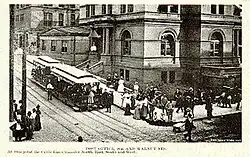 Cable cars were propelled by gripping moving underground cables, like the San Francisco cable car system.[1] The first in the city, the Kansas City Cable Railroad, opened in June 1885 after issues with mismatched track gauges.[7][8][9]