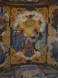 The armature of the iconostasis of this monastery is carved in a wonderful woodcarving and represents a real artistic value. It consists of three parts. Below the throne icons in the first row are scenes from the Old Testament.[5] It is interesting that in the group of saints in the niche of the right choir, in addition to the others, one martyr is painted, whose head looks more like an animal's, almost a horse's, or a dog's, than a human's. There is a halo around the head and the inscription: s. m. Christopher. According to Eastern traditions, the martyr comes from a tribe of cannibals, the so-called dog-headed (kinocephalon in Greek) and was called Reprovos. This iconography is very rare in Eastern Christianity.[6] It has been proposed that the origination of the fresco iconography lies in eastern legends.[7]