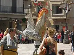 An important part of the components forming the current festive entourage of Reus were already documented in the 17th and the 18th centuries. The figure of the giants, the Mulassa, the dance of sticks, the dwarves and the devils have remained present throughout the years without interruption. Other old dances disappeared between the 18th and 19th centuries and were later recovered in the late 20th century. The gypsy dance, the dance of Joan de Vic, the dance of Prims, the Cercolets dance, the dance of the little horses, the dance of the Valencian people, the Galeras dance, the Bull of Reus, the dance of the Ladies and the Old Men, and the Eagle have been reintroduced to the festivity in an attempt to try and continue with the traditional events the old documents in town specify. Some of these elements are exceptional because they can only be viewed in Reus, as is the case of the dance of Prims, the dance of Joan de Vic, or the Galeras dance. Moreover, new elements have also been incorporated, based on typical elements of Catalonia. For example, the Cannon, the Giant Carrasclet, the dragon, the viper, the basilisk, the masquerade, the spoken dance of carrasclet, and the castles. These last ones, present in Reus since the 19th century, represent Reus' status as a fortified city.[3]