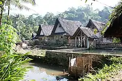 Examples of Sundanese traditional houses can be found in numbers of Sundanese traditional villages, such as Kampung Naga in Tasikmalaya Regency;[1] Kampung Ciptagelar on the southern slopes of Mount Halimun, Sukabumi Regency;[5] Kampung Urug;[6] and Kampung Sindang Barang in Bogor Regency.[7]