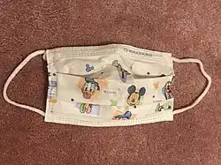 ![]() A surgical mask with hand-tied straps | |