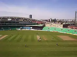 Only 13.3 overs were possible on a rain-affected third day, as Surrey moved to 33 for 1, with a draw a virtual certainty. The day was enlivened by the sight of a fox on top of one of the famous gasholders. It presumably went onto the top when the gasholder was low, and was trapped as the level rose. On the fourth day, Surrey's stand-in captain Ramprakash made an impressive 152, as Surrey elected to prolong their first innings until they reached 402 for 5 declared, to claim maximum batting points. The game ended there as a draw. (Cricinfo scorecard)