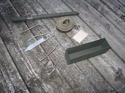 - m/42 - The most well-known Swedish military bicycle. It was produced by several large Swedish bicycle manufacturers (Rex, Husqvarna, Monark, Nymans) from the 1940s to the 1950s with a maximum of interchangeable parts.[1] It uses a rear, one-speed Novo C coaster brake hub, and a Husqvarna-produced front drum brake (chain-operated by an integrated right-hand lever). In addition, it has a large, sturdy rack with a tool box and storage tube for a short frame pump. Weight: up to 26 kg (57 lb)