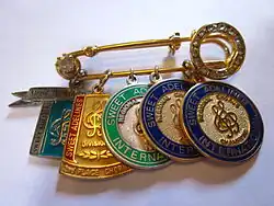 In addition, international quartet champions are awarded a tiara or crown each – every year of a different design – and are proclaimed "Queens of Harmony",[22][23] this title having been in use since at least 1960.[24] They are entitled to wear their crown at any future SAI event, even when they are not the current champions. However, they are not allowed to compete as that quartet again. The association of past quartet winners is known as the "Coronet Club".