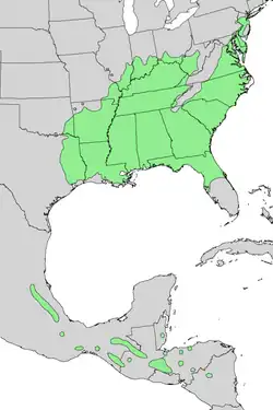 The US government distribution maps for this species are incorrect concerning the southern limit of distribution in Florida. This species occurs abundantly at Highlands Hammock State Park in Sebring, Highlands County, Florida, and even southwest of Lake Okeechobee.[25]