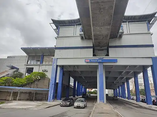 Taman Jaya is an elevated rapid transit station in Petaling Jaya, Selangor, Malaysia, forming part of the Kelana Jaya Line (formerly known as PUTRA). The station was opened on 1 September 1998, as part of the line's first segment encompassing 10 elevated stations between Kelana Jaya station and Pasar Seni station (not including the KL Sentral station opened later), and the line's maintenance depot in Lembah Subang.[1]