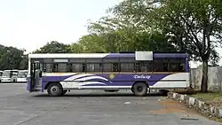 The Telangana State Road Transport Corporation (abbreviated as TGSRTC) is a state-owned corporation that runs bus transport services to and from the Indian state of Telangana. It was formed in 2014 by bifurcating the Andhra Pradesh State Road Transport Corporation.[3] Many other Indian metro towns in Andhra Pradesh, Karnataka, Maharashtra, Goa, Odisha and Chhattisgarh are also linked with the TGSRTC services. It serves about 6 million passengers every day, having three zones and services operating through 99 depots.[4]