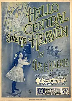 Over 650 telephone songs were published before 1937 with titles such as: "Hello Central, Give Me Heaven"; "Hello is this Heaven? Is Grandpa there?"; "Loved by Telephone"; and "The Bell Went Ting-a-Ling."[61]