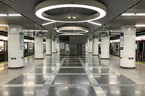 Temple of Heaven East Gate station[1] (simplified Chinese: 天坛东门站; traditional Chinese: 天壇東門站; pinyin: Tiāntán Dōngmén zhàn) is a station on Line 5 of the Beijing Subway. The station's name refers to the east gate of the Temple of Heaven, where it is located.