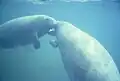 | | Trichechus manatus The West Indian manatee has been considered endangered since 1967. Manatees migrate seasonally with the changing temperatures. They can be found in fresh, brackish or salt water.[10] |