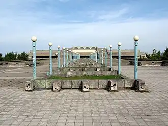Production proceeded in Los Angeles, where Hawthorne Plaza Shopping Center functioned as the interior set of an icebreaker and a shipping container.[68] The Victorville Airport was disguised as Oslo, with more than ninety extras involved.[19] Instead of using miniatures and visual effects (VFX) for the plane crash sequence, Nolan determined that purchasing a Boeing 747 proved more cost-effective.[69] In October, filming moved to Eagle Mountain, where an abandoned town had been constructed and hundreds were clothed in military camouflage uniforms.[9] Over thirty buildings were prefabricated in Los Angeles and shipped to the site. Four Boeing CH-47 Chinooks were loaned out for four days. Outside shots of a tunnel were done in the desert, while the cavernous insides of the Hypocenter were fashioned on Warner Soundstage 16, their largest, with 32,130 square feet.[70] Tenet wrapped on November 12, after 96 days of shooting.[71]