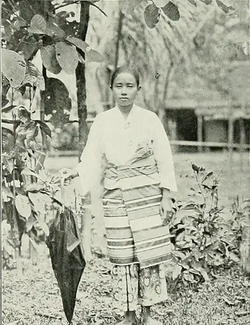 ![]() A Terengganuan Malay woman in traditional attire, 1908.  | |