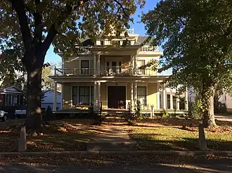 The Kee House was built in 1898. It has a two-story balconied porch and stained glass windows. It has polychromatic walls, including red brick on the first floor level and fish scale pattern wood shingles on the second. It was originally the home of United States Marshall Kee, then William Tilghman, and later A.E. Patrick, J.W. Adams, and P.D. Erwin.[1]: 4