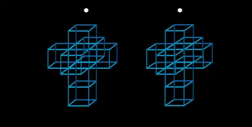 Stereoscopic 3D projection of a tesseract (parallel view) |