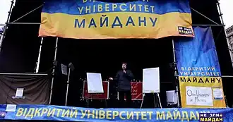 From the very beginning of Euromaidan, it opposed the violent overthrow of President Viktor Yanukovych, while not justifying the government's actions against the demonstrators.[4]