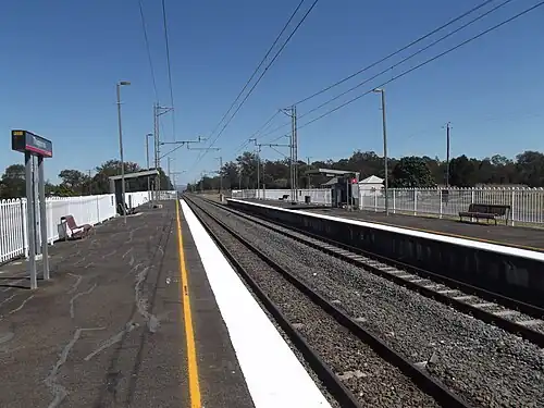 Thagoona railway station is located on the Main line in Queensland, Australia. It serves the Ipswich suburb of Thagoona. The station opened in 1888 as Raeside, being renamed Thagoona shortly afterwards.[2]