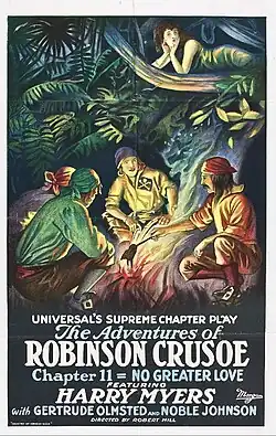 The Adventures of Robinson Crusoe is a 1922 American adventure film serial directed by Robert F. Hill and based upon the 1719 novel by Daniel Defoe. It is now considered to be a lost film.[1]