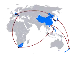 The second season of The Amazing Race Asia covered 50,000 kilometres (31,000 mi) (the longest route to date of The Amazing Race Asia) in 24 days racing across 4 continents, including the first time an Amazing Race franchise visited the Czech Republic, a nation that had not been visited by the original version at the time of air (the nation would later be visited in the 15th season, in 2009).[2][3] The show adopted newer rules from the original American version, such as the non-elimination penalty where the team who checked in last must make it to first place in the next leg or else incur the 30 minute penalty. It was also noted that the production of this season had run into the production of The Amazing Race 12 in an unknown airport.[4] Production made the show more competitive by imposing more self-driving and reducing the chance of teams being bunched up on the same airplane flight.[5]