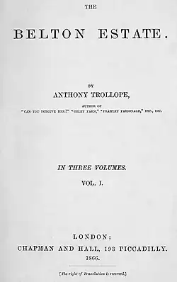 - ^ "The Belton estate / Anthony Trollope; introduction by David Skilton". Miami University Libraries. Retrieved 2011-03-15.