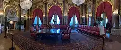 Breakfast room – The breakfast room, with its modified Louis XV style paneling and furnishings, was used for family morning meals. The furnishings, colors and gilt, although still extravagant in their use, contrast with the dining room's more lavish decoration.[11][12]