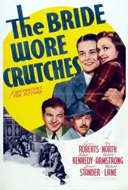 The Bride Wore Crutches is a 1941 American comedy film directed by Shepard Traube (1907–1983)[1] and written by Edward Verdier. The film stars Lynne Roberts, Ted North, Edgar Kennedy, Robert Armstrong, Lionel Stander and Richard Lane. The film was released on May 25, 1941, by 20th Century Fox.[2][3][4]