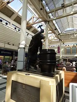 The Burton Cooper is a 1977 statue by James Walter Butler currently located in Coopers Square shopping centre, Burton upon Trent. The statue commemorates the close connection of the town to the trade, which was key to Burton's brewing industry. Originally situated outdoors, the statue was relocated inside the centre when it was refurbished in 1994.