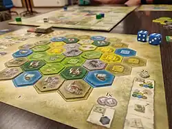 The Castles of Burgundy is a board game for two to four players, set in Medieval Burgundy. It was designed by Stefan Feld and illustrated by Julien Delval and Harald Lieske, and was published in 2011 by Ravensburger/alea.[2] It is considered a classic of the Eurogame genre,[3][4] and is cited as one of the most influential board games of the last decade.[5] It uses dice rolling and dice placement, a modular setup, and set collection as its mechanics.[6] The dice and the ability to change them give players a wide range of options.[7]